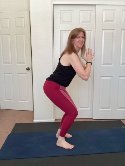 Just as every yoga practice is unique, so are our bodies. Chair squats offer versatility through variations. If you're dealing with "knock knees," a common alignment issue where your knees tilt inward, there's a chair squat variation tailored to address this concern. Incorporating this modification can support your journey towards optimal bone alignment.